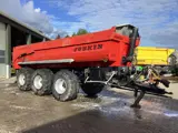 Complete en direct inzetbare Joskin Trans-KTP 27-65 Gronddumper. Afmetingen laadbak 660 X 222 X 105 CM. Hydraulisch geveerd onderstel met 10 gaats BPW assen, luchtremmen, lift-as functie op de voorste as, 2 gedwongen gestuurde assen en banden 650/55R26,5. De dumper is voorzien van een aftakas aangedreven kippomp, Bedieningskast met LS-ventielenblok en centrale smering.