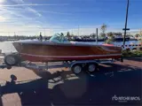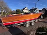 Inboard Chrysler Sea V M80 133 kW Engine, Direct shaft drive, V8 Petrol, Varnished mahogany wood, Length Overall (LOA): approx. 5.90 m, Beam: approx. 2.16 m, Draft: approx. 0.90 m. Cruising Speed: 24-26 knots, Maximum Speed: 32-35 knots, w/ T/A Trailer