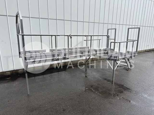 Roestvrijstalen platform/plateau van 485 x 165 cm met leuning en trap.Meer informatieAlgemene staat: goed