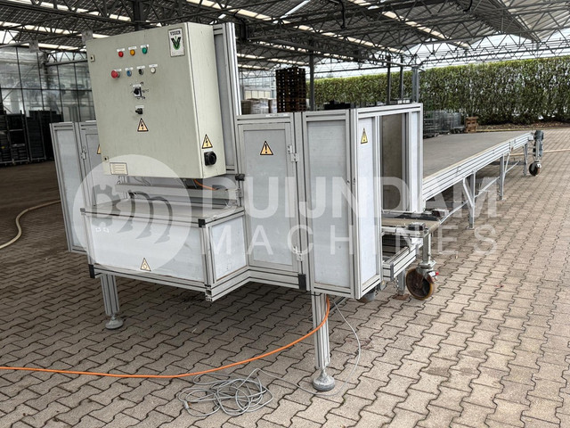 Dit systeem begint bij het vullen van potten met bijv.oppotmachine. Via transportbanden komen de potten bij de overzetter met bufferband. Hierna kunnen de potten met bijvoorbeeld een heftruck met pottenvork getransporteerd worden en uitgezet in de kas of het containerveld.