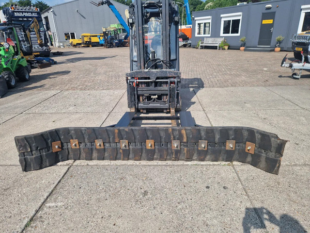 Zeer zwaar uitgevoerde puin-, zand-, grond-, sneeuwschuif, breedte ± 2.60/2.70m, hoogte 0.46m, hart-hartmaat kokers voor de vorken is 1.00m, buitenmaat van kokers is 1.20m, breedte van de kokers is 0.20m.