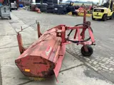 Hydraulisch aangedreven veegmachine, werkbreedte maximaal 220 CM, borsteldiameter 50 CM. Voorzien van mechanische hoekverstelling en 3 loopwielen.