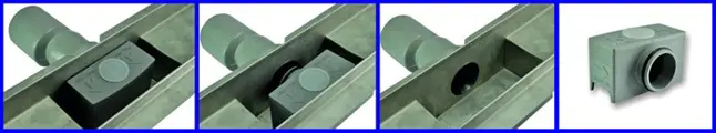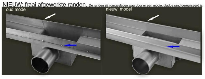 Model 2012/2013 RVS douchegootjes met tegelflens en waterdicht membraam.
