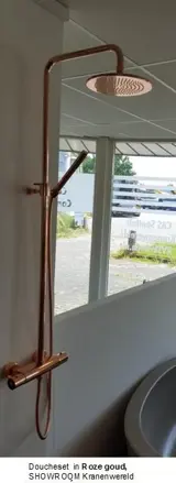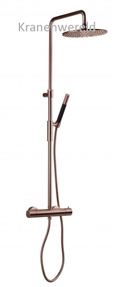 De roze gouden design Tano opbouw doucheset met thermostaatkraan bestaat uit: