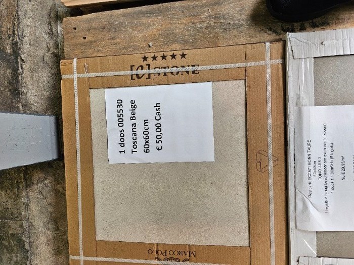 1,44m² Toscana Beige tegels 60x60 voor €50 Elke zondag open