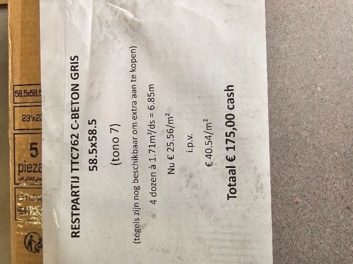 Zo kan het maar net zijn dat er bijvoorbeeld tegels van 42.18 M² ineens € 29,00 M² kost als de stockvoorraad het toelaat.