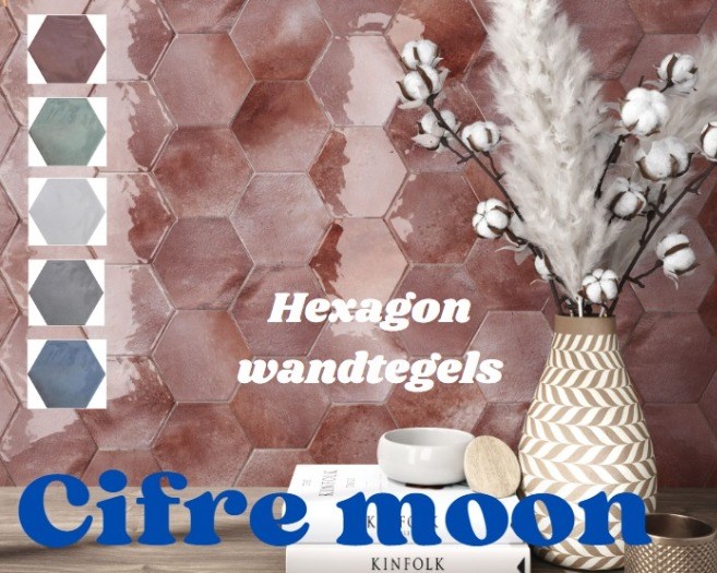 Nieuw Cifre Moon hexagon wandtegels in glans en in 5 unieke kleuren. Deze zeshoek tegels worden ook wel honinggraat tegels genoemd.