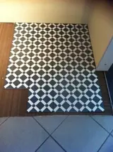geglazuurd. Het voordeel hiervan is dat ze niet vlekgevoelig zijn in tegenstelling tot de echte cementtegels.