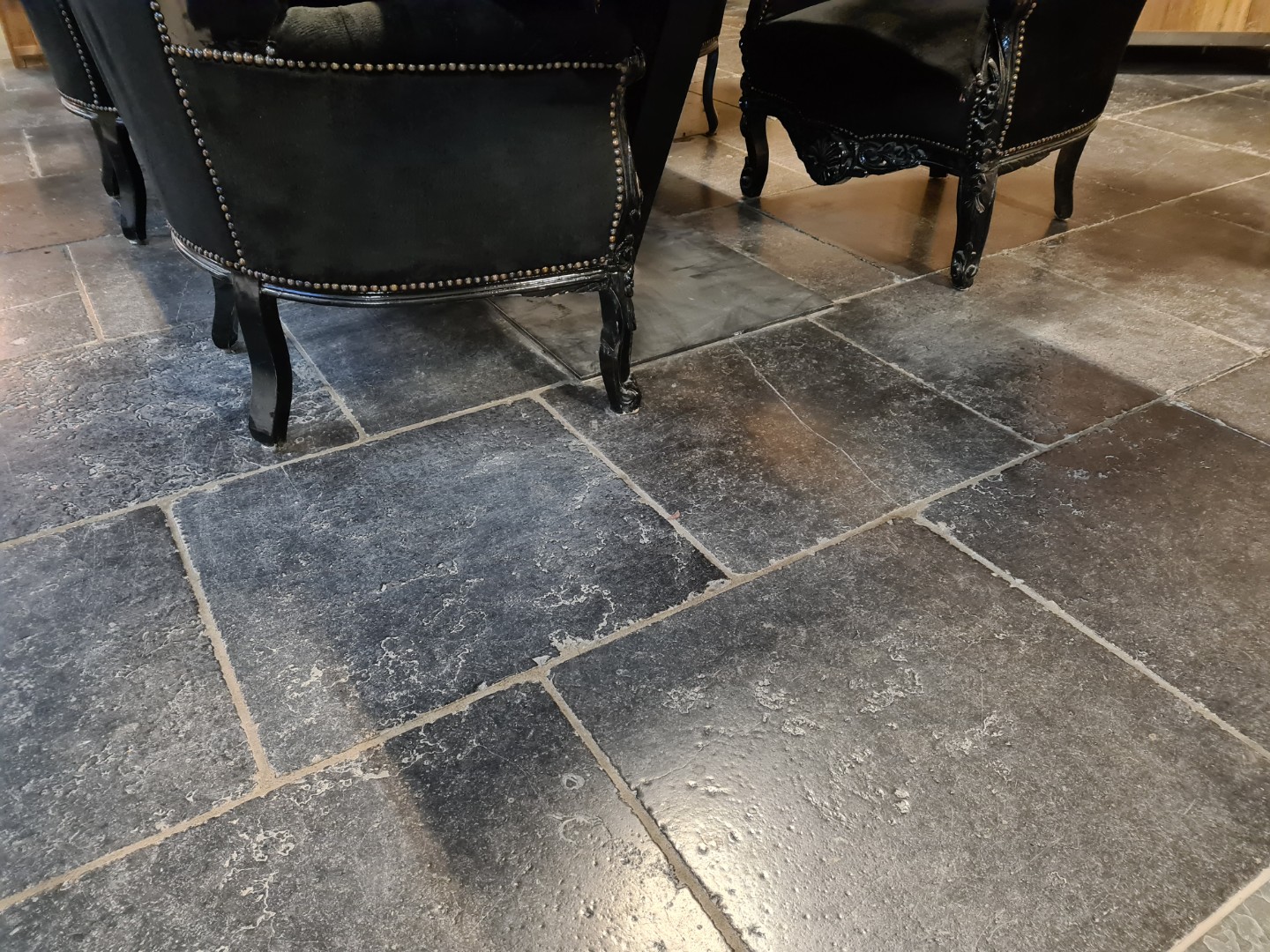 Belgisch hardsteen 60x60 cm is een zeer mooie compacte kalksteen die zich kenmerkt door zijn prachtige kleur, eeuwenoude fossielen (zeelelies / schelpen / planten / zeedieren), grillige aders en zwarte schilferingen. De kleur varieert van grijsblauw tot grijszwart welke afhankelijk van de behandeling kan worden benadrukt. Deze natuurlijke / authentieke sfeervloer is makkelijk te combineren met nagenoeg alle houtsoorten, wit en grijstinten. Hierdoor wordt deze tijdloze hardsteen veel toegepast in de hedendaagse, klassieke en landelijke stijl. De Belgisch hardsteen wordt een geleefde vloer wat inhoud dat de vloer na gebruik en door slijtage alleen maar mooier en rustieker wordt. Door deze eigenschap wordt deze vloer veel toegepast bij een landelijke inrichting, oude en monumentale huizen / panden en boerderijen. Belgisch hardsteen wordt ook wel Arduin, Petit Granit of blauwsteen genoemd.