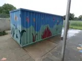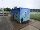 heeft bij een kinderdagverblijf gestaan, waar het zo beschilderd is
