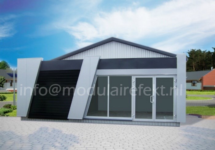 - puntdak: sandwichpanelen van 150 mm met een kern van polystyreen