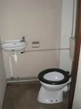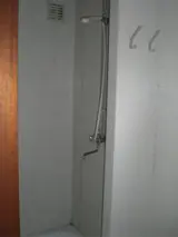 marmoleum vloerbedekking in keuken en toilet; in de douche epoxy gietvloer