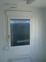 een PVC draai/kiep vensters met dubbel glas voorzien van rolluiken