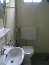sanitaire ruimte voorzien van douche, w.c., wastafel warm/koud water en wasmachine aansluiting/afvoer