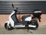 Nette fijn rijdende Vmoto Super Soco E-Max V120LD+ met 4000 Watt motor, 09-2020 met maar 563km, vergrote accu (grote actieradius), elektrische scooter met topkoffer, USB aansluiting, laadkabel, middenstandaard, brede banden, goed onderhouden, links en rechts standaard.
