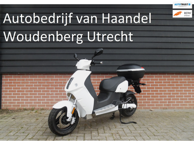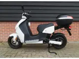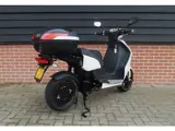Nette fijn rijdende Vmoto Super Soco E-Max V120LD+ met 4000 Watt motor, 11-2020 met maar 134km, vergrote accu (grote actieradius tot wel 150km), makkelijk lade met 220V snoer, Usb aansluitpunt, elektrische scooter met topkoffer, middenstandaard, brede banden, goed onderhouden, links en rechts een zijstandaard.