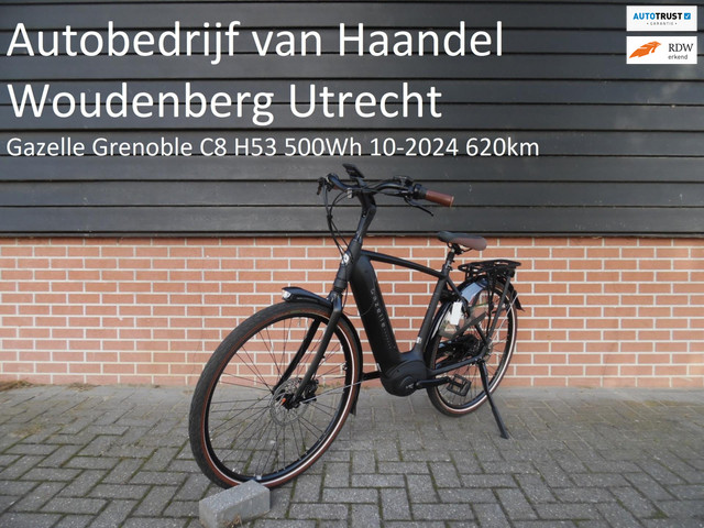 Jonge gebruikte Gazelle Grenoble Smart C8 HMB 10-2024 met 620km, met lederen handvatten, extra stevige bagagedrager, sterke Bosch Active Line Plus motor 50Nm (veel ondersteuning indien nodig ook in heuvel achtig gebied), Nexus 8 naafversnelling, verstelbare stuurpen, framemaat 53 (voor lichaamslengte 166-175cm), grote accu 500W, voorvork verend, zadel verend, fabrieksgarantie,