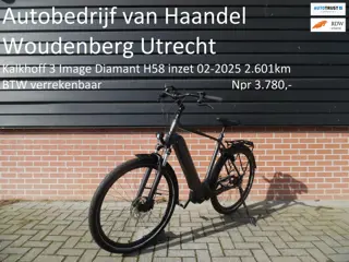 De fiets heeft ongeveer 2.601km gereden sinds inzet 02-2025, een grote accu van 500W, Bosch Intuvia 100 is gemakkelijk afleesbaar, with walk assist, Shimano Nexus 8 Speed zijn degelijk en bieden een groot bereik. Kleur Diamond Black Glossy, maat Diamant XL58 (kalkhoff geeft lengte bestuurder op van 187 - 196 cm), Selle Royal Nuvola zadel, verende voorvork . Brede banden met lek bescherming Schwalbe Energizer Plus Performance, 55-622, 2 schijfremmen voor en achter, Bosch smart lader en 2 sleutels. Nieuwprijs €3.780,-