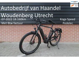 Luxe kwaliteit fiets van Koga Speed Pedelec Pace B20 met Enviolo schakeltechniek, sterke Bosch Performance Line Speed middenmotor. Ongeveer 18.160 km gereden van 07-2022 (tot Pedelec van het jaar 2021 gekozen), goed onderhouden zakelijk (zie facturen), accu van 500W (voor een groot rijbereik van 30-75km), Snaar / Belt aandrijving, KIOX 330 display, kleur Off Black high gloss metallic, frame maat L (57cm) ,brede banden met lek bescherming, 2 schijfremmen voor en achter, Bosch 4A lader en 2 sleutels. Nieuwprijs ruim €5.000,-. Verkoopprijs incl BTW fiets deze is te verrekenen voor ondernemers.