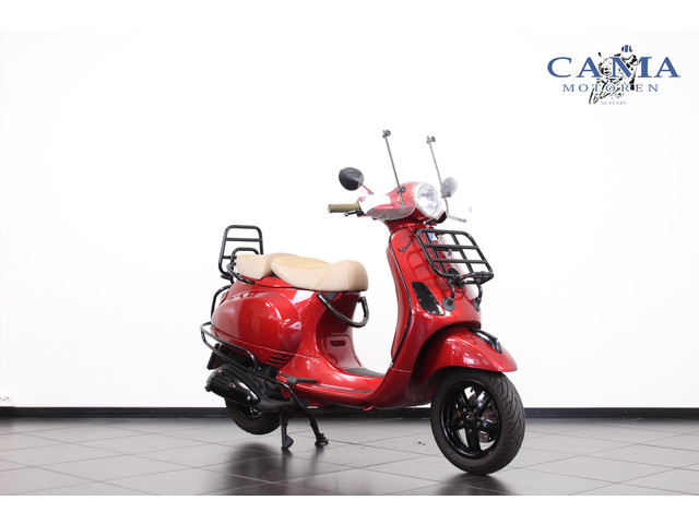 Vespa LX 50 Touring SNORscooter met hoog scherm, voorrek, achterrek, luxe duo zadel, antiroboslot, smoke verlichting, valbeugels achter.