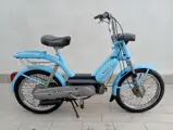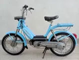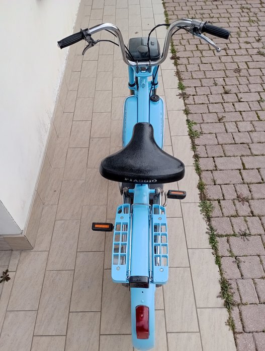 Deze bromfiets is 45 jaar oud, is gerestaureerd met originele onderdelen en gespoten in een originele Piaggio kleur: Piaggio Olympic Blue.