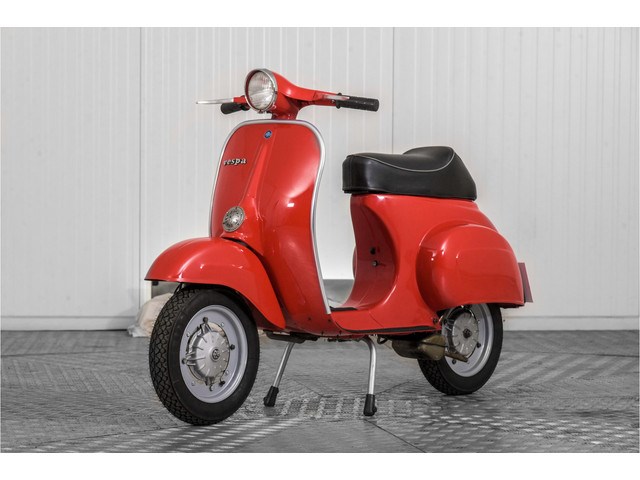 originele Vespa 50 R, afkomstig uit Italie, oude italiaanse kenteken is nog bij de scooter, nu geregistreerd met Nederlands brommerkenteken. Oorspronkelijk was Piaggio een (oorlogs)vliegtuigbouwer die na de Tweede Wereldoorlog geen vliegtuigen meer mocht bouwen. Italië had immers gecollaboreerd met de Duitsers. Daarom besloot de Piaggio-directie om hun productielijn om te vormen tot een scooterfabriek.In 1946 werd Piaggio beroemd met de productie van scooters die de naam Vespa (wesp) kregen.Vele vliegtuigonderdelen werden aanvankelijk gebruikt. Zo was het voorwiel het neuswiel van de vroegere vliegtuigen, de motor was een aangepaste startmotor, enz. Al snel werden deze scooters - ontworpen door Corradino d’Ascanio - populair in het naoorlogse Italië, waar grote behoefte aan eenvoudige transportmiddelen bestond. Vespa werd zo een merknaam.