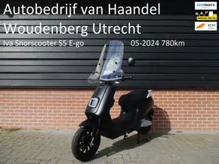 Luxe Iva Snorscooter S5 E-go in de kleur matt zwart, van 05-2024, 780km, zo goed als nieuw. De IVA E-GO S5 is een elektrische scooter uit het hogere segment, welke voorzien is van een gelikt design, een super krachtige 3000W Bosch motor, en een heleboel technische snufjes! Zo is er standaard een alarmsysteem aan boord, kun je rijden zonder sleutel, is er rondom LED verlichting aanwezig, een USB aansluiting, en is er een krachtige Lithium accu van Samsung aanwezig waarmee je op een goedkope manier een heleboel kilometers kunt rijden! Nieuwprijs van deze scootere 2.499 euro+snelheid verhoging 99 euro,