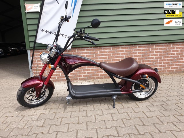 Deze stoere e-scooter heeft brede banden, dubbele schijfremmen en een robuuste constructie. Dit alles zorgt voor een prettige wegligging, korte remweg en fraai uiterlijk. Deze e scooter wordt geleverd met sterke 2000w motor en draagbare accu. Ook beschikt de machine over schokdempers onder het zadel, een digitale snelheidsmeter, alarmsysteem met afstandsbediening, stuurslot en praktische accessoires zoals een telefoonhouder met USB aansluiting. Zo kun je bereikbaar blijven en navigatie gebruiken.