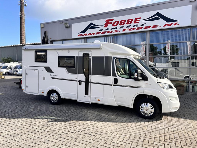 Super mooie en Compacte camper met lengtebedden en slechts 6.8m lang! De Adria Compact Plus SL Uit 2021, uitgerust met airco, cruisecontrol, multimedia systeem met groot beeldscherm en camera, plisee verduistering cabine en een sterke Fiat 2.3mj motor met 140pk en slechts 39834km op de teller. Voorzien van 2 luxe draaibare pilootstoelen, 2 persoons dinette, zijbank, middenkeuken, koelkast, ruime enkele bedden met verlenger, zonnepaneel, bearlock, lift fietsenrek, hordeur en WC met wat en douchegelegenheid.