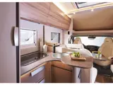 De L-vormige zitgroep nodigt uit tot lange avonden tafelen of ontspannen met een goed boek. Dankzij de slimme indeling en sfeervolle indirecte verlichting ontstaat een warme, luxe ambiance. De keuken is praktisch ingericht met een ruime compressorkoelkast en handige werkbladverlenging — ideaal voor wie ook onderweg graag kookt.