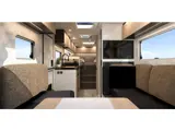De keuken is ontworpen voor echte levensgenieters. Met een royale 138 liter compressor koellade inclusief apart vriesvak, een uitschuifbaar werkblad en een elektrische keukenlift met indirecte verlichting beschik je over alle gemakken van thuis — maar dan onderweg. Het duurzame mineraalstof werkblad onderstreept de hoogwaardige afwerking.
