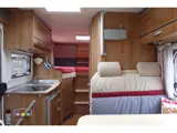 De keuken is voorzien van een 3 pits gascomfort, een spoelbak met een kraan voor koud en warm water en een 93 Liter koelkast met ruim vriesvak. De Truma-combi unit is vervangen voor een nieuwe uitvoering (Truma Combi 6 E) waarbij het systeem zowel op gas als elektrisch gebruikt kan worden. Een mooie en ruime toiletruimte ontbreekt uiteraard niet. Deze is voorzien van een toilet met SOG-systeem en doucheruimte die ontstaat door een wegdraaibare wastafel.