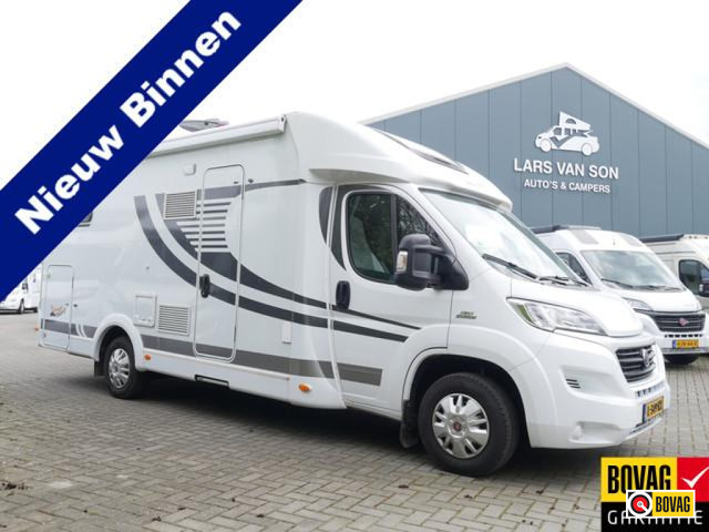 De camper is onder andere voorzien van stoffen bekleding, radio/mp-3 speler, bluetooth, luxe ruime keuken met 3 pits kooktoestel, mooie en lichte houttinten in het interieur, dwarsbed, wasbak, motorairco, zeer veel opbergmogelijkheden door de vele en grote kast ruimtes, aparte toiletruimte, aparte ruime douche ruimte, een grote rondzit met tafel en een XL garage met serviceluik aan de rechter en linker buitenzijde.