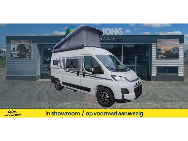 Met een lengte van slechts 5,41 meter biedt de CV 541 een uitzonderlijke combinatie van wendbaarheid en comfort. U beschikt over een groot slaapgedeelte van 206 x 143 cm (slaapdak), een complete keuken, een volwaardige toilet-doucheruimte en extra slaapplaats(en) dankzij de ombouwbare zitgroep — allemaal op een compact en slim ingedeeld vloeroppervlak.