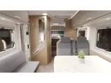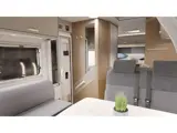 De ruime garage onder de bedden biedt volop plek voor fietsen en bagage. De aparte douche- en toiletruimte en de gezellige zitgroep met draaibare stoelen zorgen voor optimaal comfort onderweg.