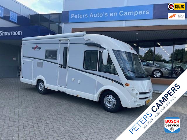 De Carthago C-Tourer i 142 QB, 2014 staat in Ysselsteyn bij Peters Auto's en Campers! De compacte integrale camper van Carthago voor C-rijbewijs. Met 2 draaibare voorstoelen, rond zit, keuken, douche & toilet ruimte, dwars bed, grote garage. Volgende accessoires: - Heavy chassis, max belastbaar tot 4.250 kg - 2.3Mjet Fiat motor, 148 pk - handgeschakelde versnellingsbak - Inlegtapijt in cabine - Bekleding: Cordoba - Knuffel comfort pakket 3 decoratie kussens, Quick Up pakket: LED tv met lift achter kleine zit - Super Pakket Tourer automatische airco, zwaardere dynamo, 2 airbags, cruise control, centrale vergrendeling alle deuren, buspiegels, zitvlak verstelling voorstoelen, achter, dashboardveredeling, radio/dvd speler, voorbereiding zonnepaneel & satelliet installatie, keuken, dakluik boven keuken, garage met vilt bekleed, vuilwaterslang, SOG toiletontluchting, Truma secumotion, Carthago achteruitrijdcamera - Economy pakket mistlampen in voorbumper,...
