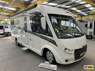 De camper heeft 2 draaibare voorstoelen met daarboven een 2 persoons hefbed, een L zitgroep, L keuken, aparte douche en toilet en achterin de camper 2 enkele bedden met daaronder een ruime garage.