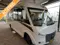 Deze Tourer heeft 2 draaibare voorstoelen met daarboven een hefbed, een L zitgroep, middenkeuken, douche- en toiletruimte, achterin de 2 enkele bedden met daaronder een flinke garage.