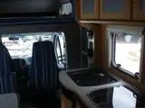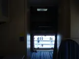 Deze camper heeft een stapelbed achterin overdwars, wanneer je het onderstebed bed opklapt, ontstaat er een grote garage,