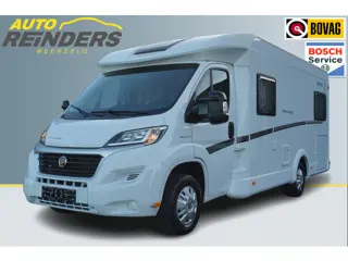 Ideale indeling en afmetingen: slechts 6.95 meter lang en voorzien van 2 lange en lage enkele bedden (erg makkelijke instap!), ruime keuken met grote en hoge koelkast, grote rondzit, extra brede toegangsdeur en badkamer met cassettetoilet en klapwand om er een douche van te maken.