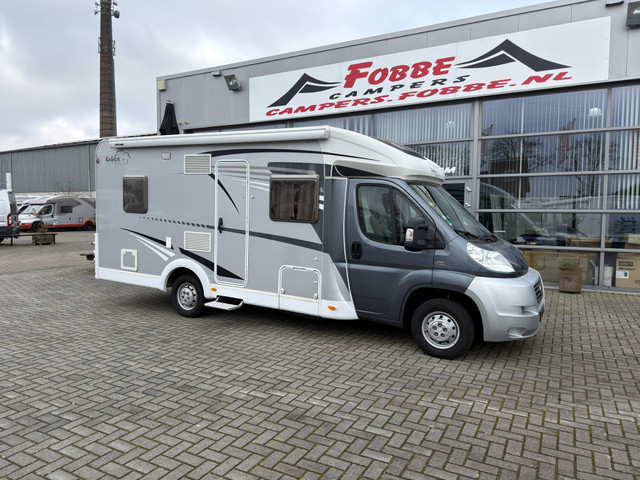 Compacte 4 persoons camper met Fransbedbed en hefbed! Slechts 82dkm! Dethleffs Glucksmobil T64 uit 2012, uitgerust met airco, cruisecontrol en een krachtige Fiat 2.3Mj motor met 130pk en slechts 82989km op de teller! Voorzien van 2 luxe draaibare pilootstoelen, 2 persoons dinette met zijbank, ruime middenkeuken met XXL koelkast, ruim fransbed, hordeur, ruim hefbed, WC met was en doucheglegenheid en nog vele extra's!