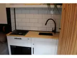 Onder andere voorzien van spoelbak met kraan, watertanks schoon/vuil, gasfornuis, chemisch toilet (draagbaar), koelkast, binnen-en buitendouche, opbergruimte, bank, dubbel bed, tafel etc.