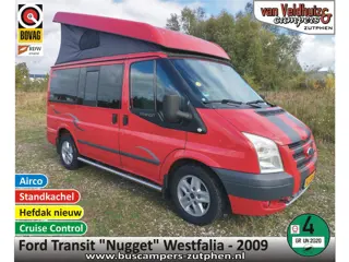 Nu bij ons aangeboden de beroemde Ford Transit "Nugget" buscamper van Westfalia met slaaphefdak in zeer nette staat, zojuist nog voorzien van een nieuw donkergrijs hefdak-tentdoek.....