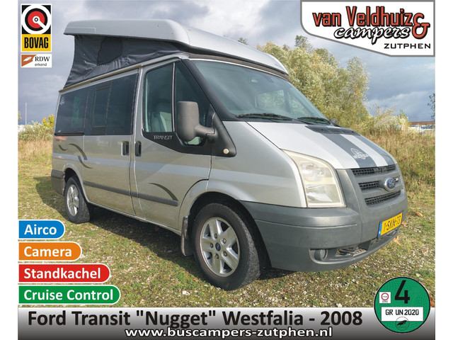 Hierbij aangeboden de beroemde Ford Transit "Nugget" buscamper van Westfalia met slaaphefdak, zojuist voorzien van een nieuw donkergrijs hefdak-tentdoek.....