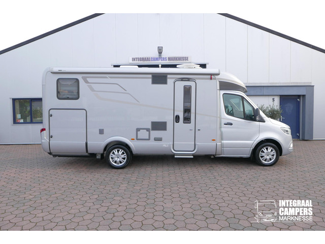 De cabine van deze half-integraalcamper is makkelijk toegankelijk via de bestuurders- en de passagiersdeur. De cabine is uitgerust met het Mercedes-Benz 10,25 inch MBUX multimedia systeem en 2 luxe pilotenstoelen die volledig verstelbaar en draaibaar zijn. Verder beschikt deze camper over: