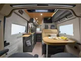 De Redwood laat zich zien: kleuropties Storm Blue Metallic, Lanzarote Grey of Campovolo Grey, ramen zonder frame, matzwarte velgen en gelakte carrosseriedelen geven een zelfverzekerde uitstraling. Het interieur combineert luxe en praktische details: uitschuifbaar kruidenrek, USB-punten en een uitbreidbaar keukenwerkblad maken het leven onderweg eenvoudiger en aangenamer.