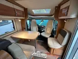 De camper heeft 2 draaibare voorstoelen, een ruime dinette ombouwbaar tot een 2 persoons bed van 2m06 x 1m35, een middenkeuken, natte cel met douche en toilet en achterin de camper 2 enkele bedden met daaronder een flinke garage.