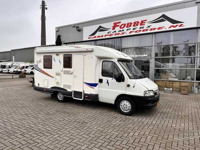 In zeer nette staat, zeer compact en toch ruim! De Joint J148 uit 2004, uitgerust met een fijne 84pk sterke Fiat 2.0Jtd motor met nog geen 86195km op de teller! Voorzien van een 2 persoons dinette, 2 draaibare pilootstoelen ruime keuken, ruim Fransbed, zonnepaneel, vaste WC met was gelegenheid en aparte douchecel.