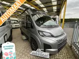 De Boxlife 540 heeft 2 draaibare voorstoelen, een middendinette, middenkeuken, natte cel en achterin de camper een vast dwars 2 persoons bed met daaronder bergruimte.