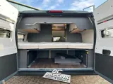De Boxlife 600 DQ in Borculo heeft 2 draaibare voorstoelen, een middendinette met daarboven een handmatig neerlaatbaar hefbed, middenkeuken, middentoilet en achterin de camper het dwarse 2 persoons bed met daaronder bergruimte.
